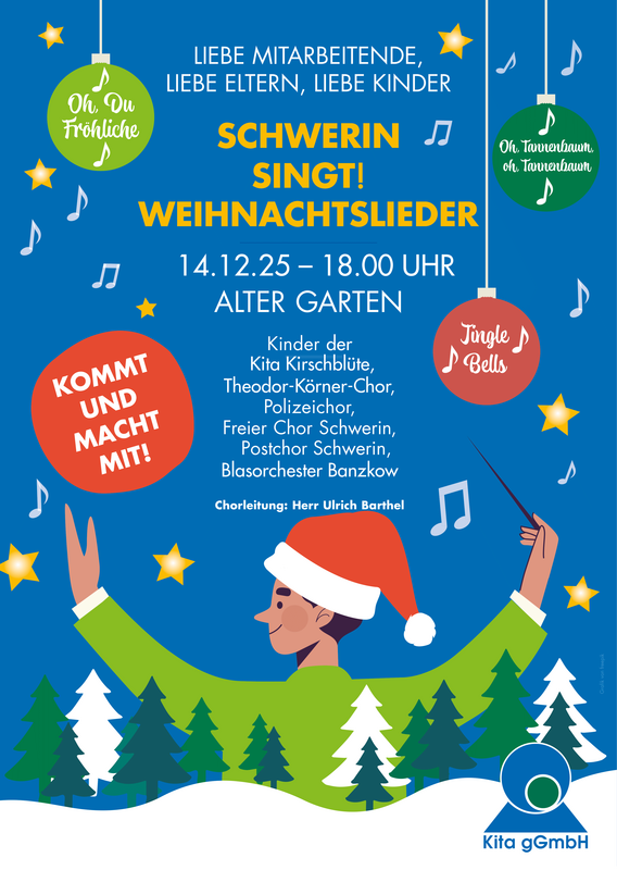 Unter der Leitung von Ulrich Barthel sind das Blasorchester Banzkow, der Theodor-Körner-Chor, der Polizeichor Schwerin, der Postchor Schwerin sowie der Freie Chor Schwerin auf der Bühne mit dabei ... und dazu die Kinder der Kita „Kirschblüte“. Die Proben sind in vollem Gange und die Kinder freuen sich bereits sehr auf das große Event!