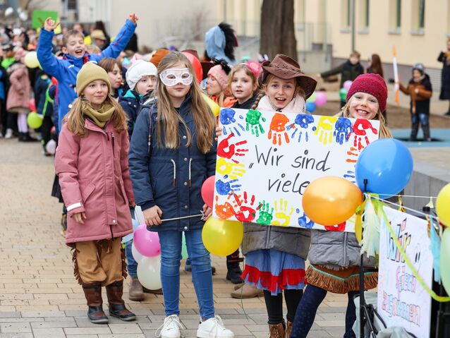 Dass Märchenfiguren keineswegs out sind, sich aber wandeln, zeigte sich an modernen Verkleidungen wie bei Eiskönigin „Elsa“ oder Zauberer „Harry Potter“ – und bei einem Blick von Marita Buß in Rotkäppchens Korb: Ob denn Brot und Wein drin seien, wollte sie mit einem Augenzwinkern wissen, schließlich sei es ja so in der Sage. Rotkäppchens Antwort war schlicht. „Nö, eine Möhre“, sagte die achtjährige Jette. „Natürlich habe ich keinen Wein vermutet, aber vielleicht was Süßes“, so die Hortleiterin. „Dass Rotkäppchen aber gleich zur Gesundheitsbotschafterin wird, zeigt wohl, dass wir bei der Kita gGmbH gut über Obst und Gemüse informieren“, so Marita Buß schmunzelnd.